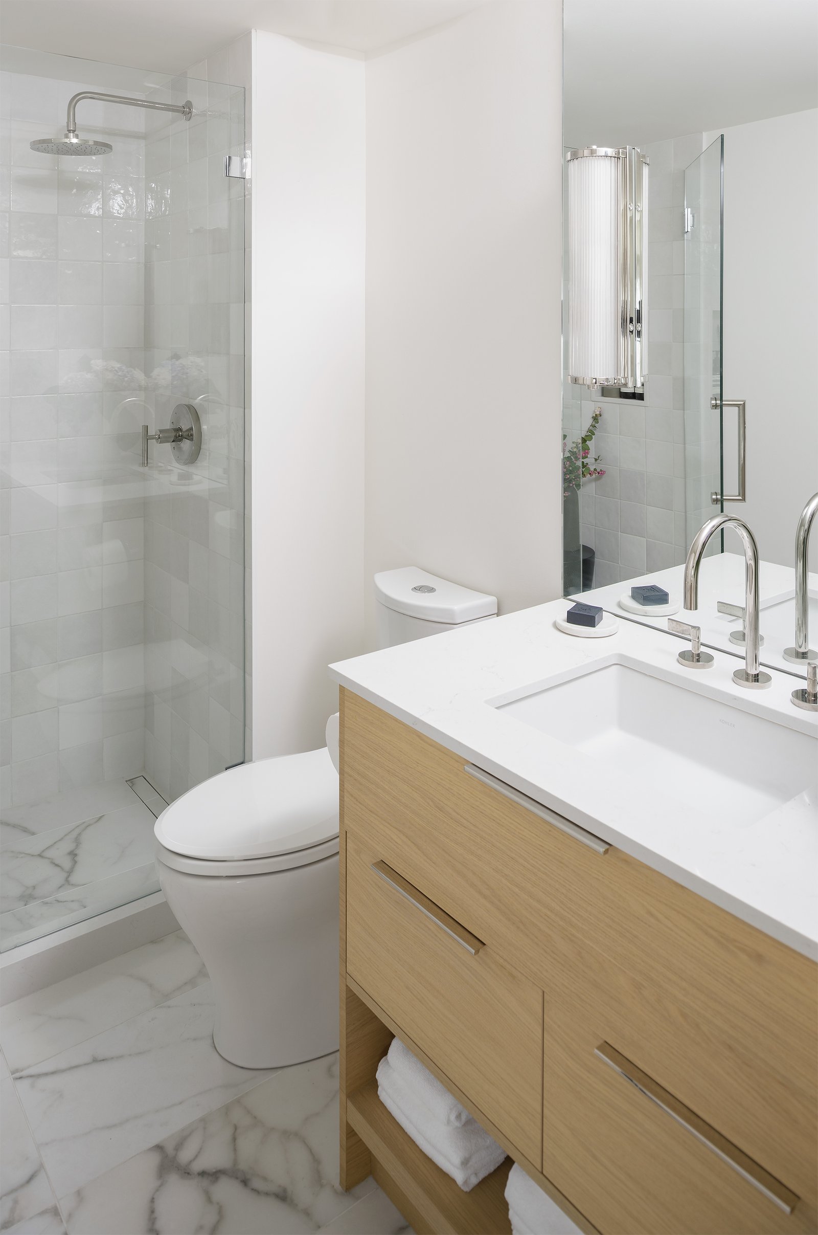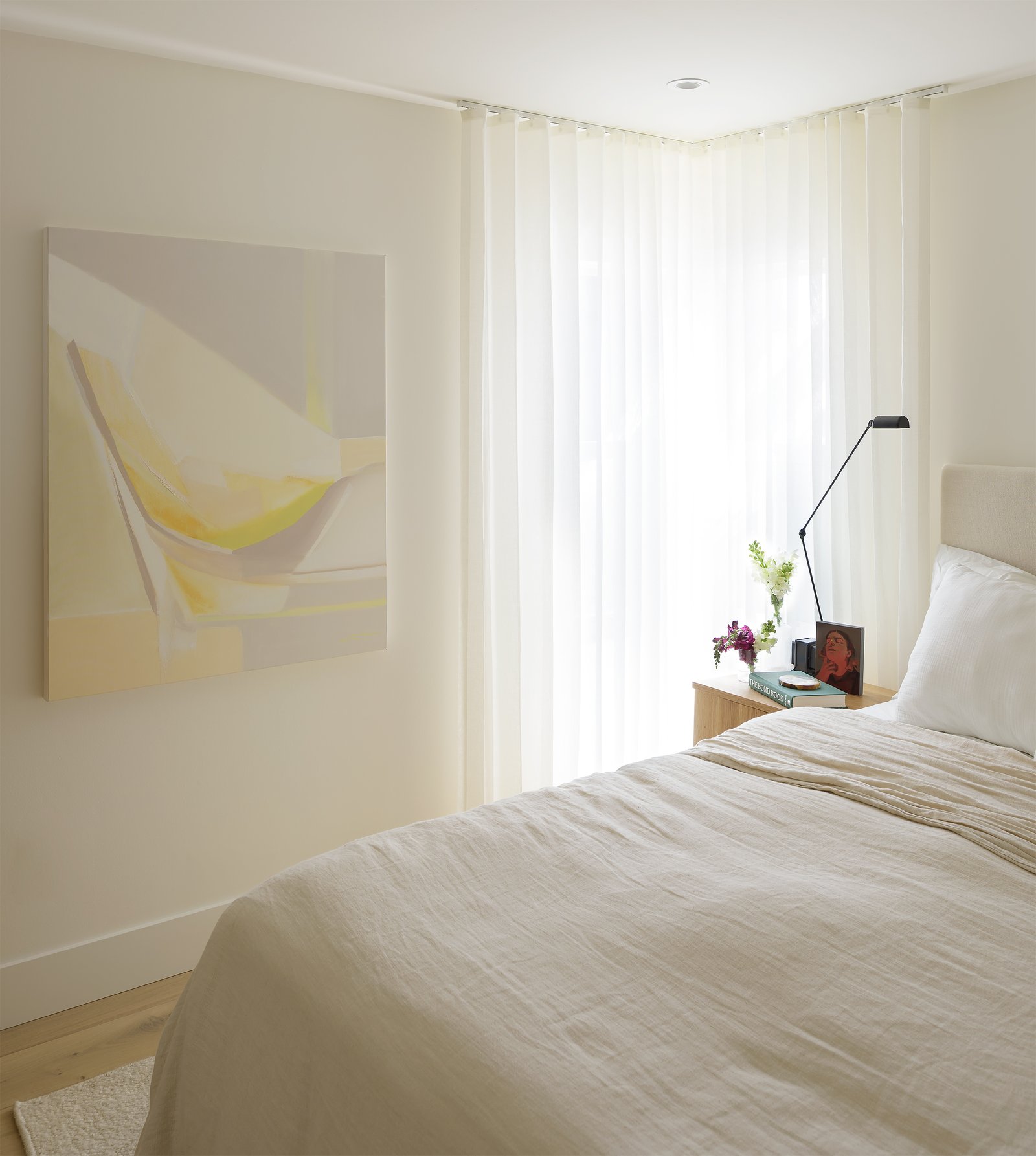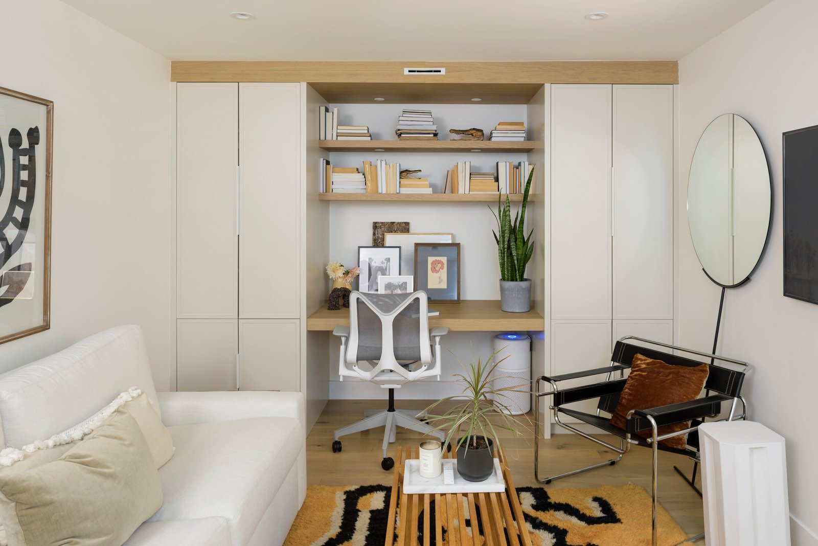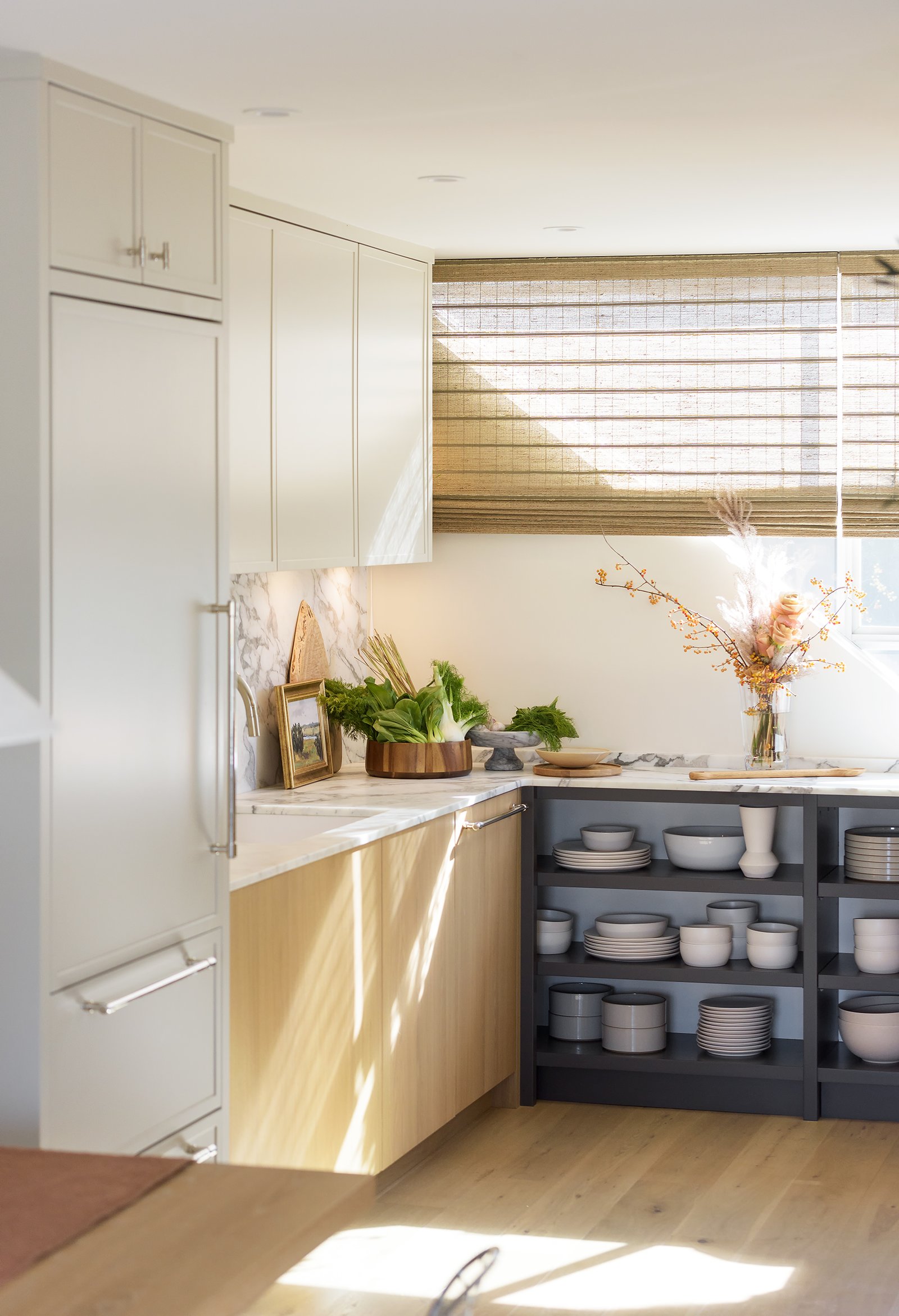 The design team at Jamie Banfield Design took this project to the next level by opening up walls between the living and kitchen areas, re-vamping the entire kitchen layout, and re-drawing the principal bedroom layout with an ensuite, while taking advantage of the skylights and ample natural light. A heat pump was added on the roof to provide air-conditioning and heat while the existing wood-burning fireplace was revived for décor.